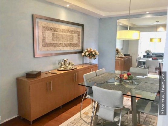Pesos ColombianosAPARTAMENTO REMODELADO HACE 6 AÑOS SOBRE CONSTRUCCIÓN DE CUSEZAR AÑO 1989. EXTERIOR SEGUNDO PISO CON VISTA AL PARQUE. 110 M2 PRIVADOS Y 120 APROX CONSTRUIDOS. TRES ALCOBAS, PPAL CON BAÑO Y VESTIER, LAS OTRAS DOS ALCOBAS COMPARTEN BAÑO EN HALL, BAÑO SOCIAL. SALA CON CHIMENEA, COMEDOR INDEPENDIENTE. COCINA ABIERTA, ZONA DE ROPAS. DOS PARQUEADEROS EN LÍNEA Y DEPÓSITO. EL APTO DESTACA POR SU EXCELENTE DISTRIBUCIÓN, AMBIENTES AMPLIOS CON LUZ NATURAL, ACABADOS DE CALIDAD. EN LA REMODELACIÓN SE CAMBIARON TUBERIAS, SE AUMENTÓ EL NÚMERO DE LUCES POR AMBIENTE Y SE INCORPORÓ LOS DUCTOS DE SONIDO. CONJUNTO CERRADO CON EXCELENTE MANTENIMIENTO: SALÓN SOCIAL CON BBQ Y PARQUE INFÁNTIL, SQUASH Y GYM, VIGILANCIA 24H, PARQUEADEROS EXTERNOS DE VISITANTES, ASCENSORES ACTUALIZADOS. CANON NO INCLUYE ADMON.
